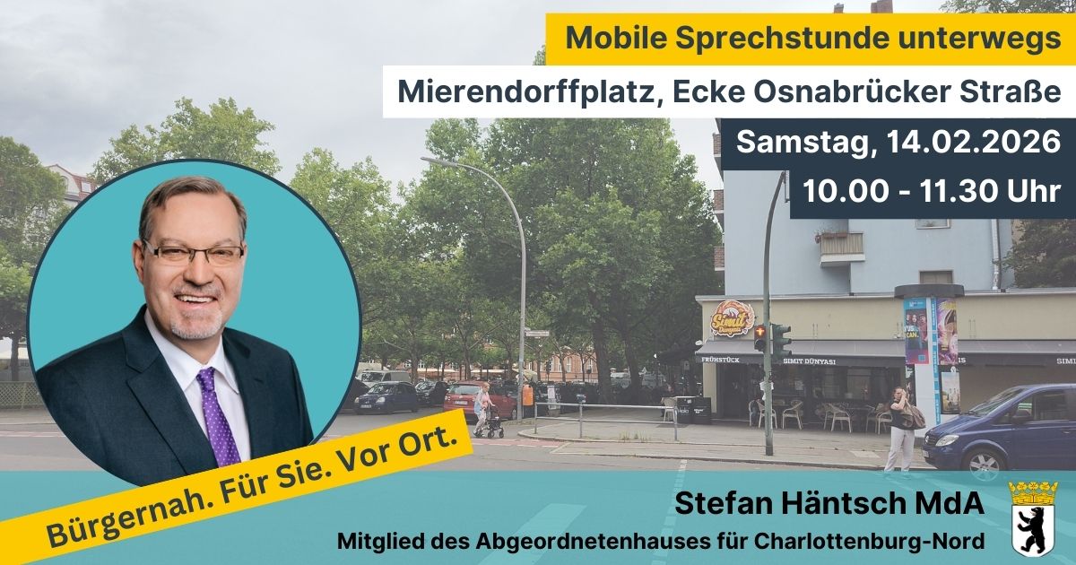 Ihr direkt gewählter Abgeordnete für Charlottenburg-Nord, Mierendorffplatz und Rathaus Charlottenburg/Alt-Lietzow: