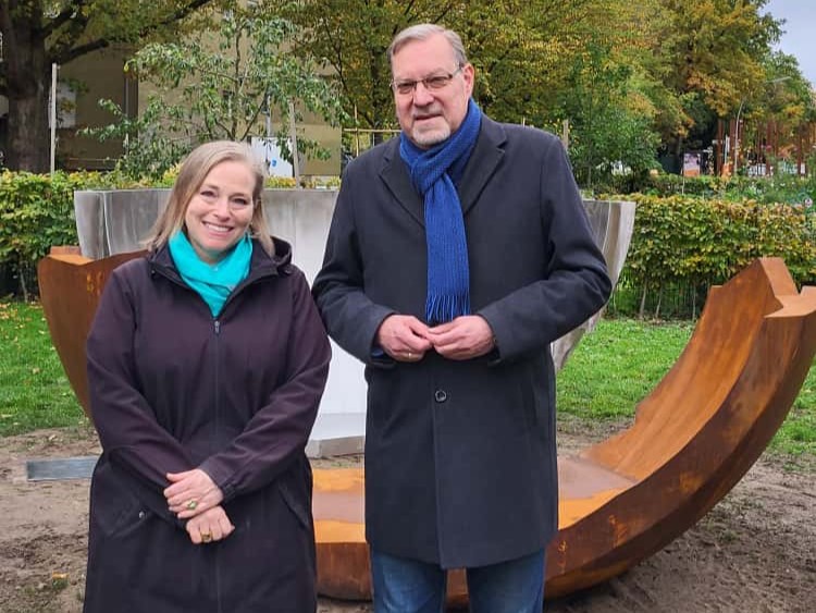 Ein neues begehbares Kunstwerk im Grünzug Halemweg–Popitzweg: Die kanadische Künstlerin Stephanie Imbeau hat mit Unterstützung aus dem Programm Nachhaltige Erneuerung eine beeindruckende Installation geschaffen, die an die ukrainische Ärztin Galina Romanowa erinnert.