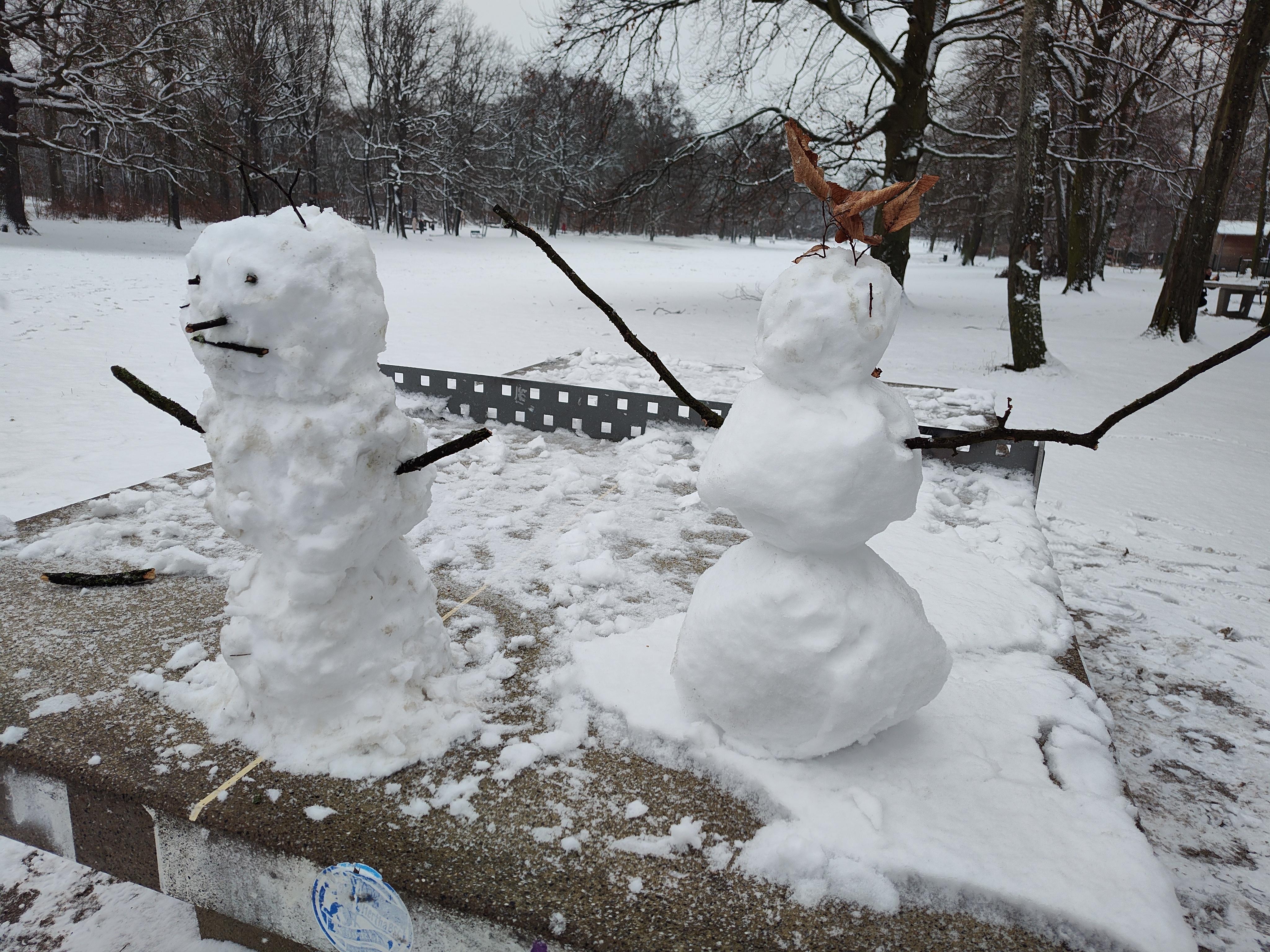 Silvesterspaziergang im Winterwunderland. Der Jungfernheidepark zeigt sich von seiner besonderen Seite. Der erste echte Schnee der Saison hat viele große und kleine Schneemänner hervorgebracht - ein schönes Bild zum Jahresausklang.